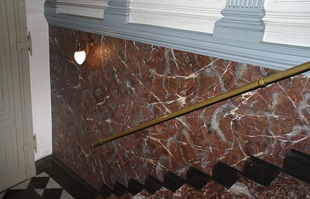Durch den Einsatz von verschiedenen Lasuren kann die marmorähnliche Optik noch veredelt werden. Auch Bordüren und Schriftzüge können eingearbeitet werden sowie metallische Effekte erzielt werden.